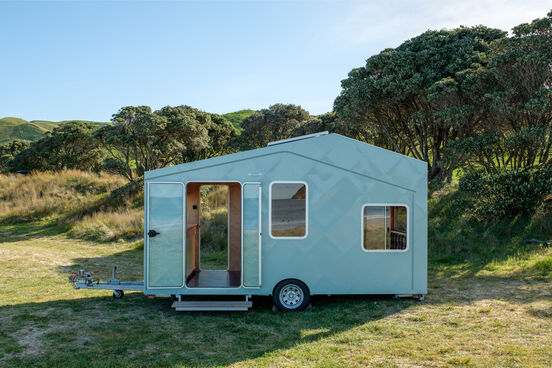 The Caravannex is mobile architecture in action, transforming to fulfil many different functions. Unlike the classic New Zealand caravan, it is designed to holiday away and then return home to become a natural architectural extension of a house or building – Caravan + annex. In a year when we have spent most of our time at home and very little of our time on holiday, Caravannex offers a new alternative to a home away from home.