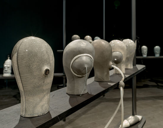 An installation of seven small hexagonal rooms and 100 ceramic heads, each distinctly different from the next, by one of Aotearoa New Zealand’s most inventive artists.