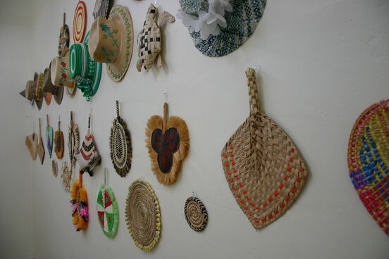 With Pacific community encouragement as well as curatorial encouragement and Arts Council support Jowitt undertook his first trip to the Pacific in 1981-82 and over six months visited the Cook Islands, Niue, Samoa, Tonga and the Tokelau Islands. He says he was warmly embraced by communities on this first trip, and subsequent trips and a number of the items in his collection were gifts to him partly in response to his commitments to negotiating permission to photograph, sharing copyright with photographic subjects and later gifting copies of his publications to schools. He also purchased works for his collection and his buying focus was on practical items that helped him deal with tropical heat, such as hats and fans, whilst travelling. Jowitt is particularly fond of the hats made from rito, the fine fibre of the inner fronds of coconut leaves.