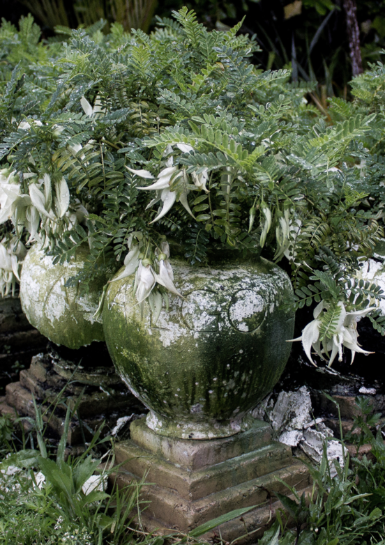 Raewyn Atkinson’s richly layered visual language involves paradox and citation where metaphor, the natural environment, chance and ceramic processes all play their part. This is particularly evident in the time-delay footage of the changing installation I Too Am In Paradise II (2019), featuring thirty kōwhai ngutu kōrako in unfired clay vessels documented in the artist’s Brooklyn garden over ten months. The project may sound unexceptional, but the plants chosen are a rare white variant, an albino form, of Clianthus puniceus, one of the two endangered species of kōwhai ngutu kākā. As with Atkinson’s earlier projects involving politically charged content (for example, melting ice in the Antarctic in 2005 and 2006), uncertainty and anxiety around survival resumes. There is good reason. The Department of Conservation claims only 120 kōwhai ngutu kākā survive in the wild in Te Ika-a-Māui. Thus the artist felt a great responsibility in being entrusted with this rare plant by its kaitiaki ‘guardians’ for her installation.