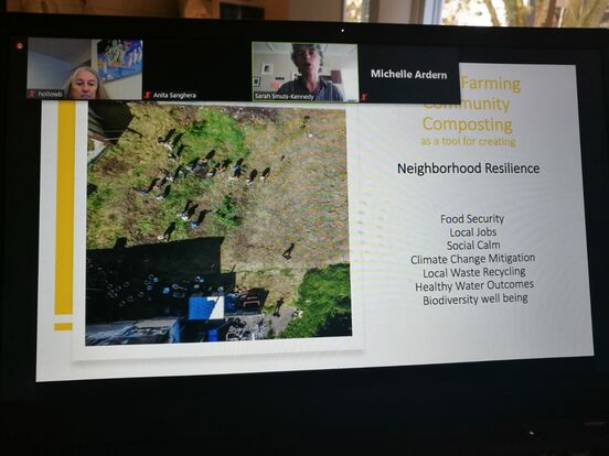 In response to lockdown, our team Activate Auckland curated a series of zoom events to share the ideas of innovative people working within urban development spaces. Sarah Smuts-Kennedy is seen here during one our events, ‘Resilience, people, places and spaces’. She is presenting on food security and urban farming with Gristelina overseeing the proceedings.
