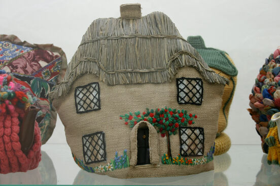 Tea cosies form an important part of my home textile crafts collection, which emphasises textile handwork done by women from the 1930s to the 1950s, the last great period of "making do". Much of this handwork is familiar to us, but has been overlooked and underestimated, partly because it is traditional women's work, and also because it relates to domestic life, while we've preferred to value achievements in the wider world.