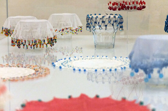 At the same time as I was rescuing the rather plainer version of Mrs Laubscher's handiwork from my mother's kitchen drawer, I noticed that a cousin was using some more contemporary versions – plain white netting with colourful African beads at the edges. She told me she had bought them at a local market from women's groups selling home wares. I wasn't able to get to that market, but I managed to buy some at a souvenir shop before I left Cape Town.