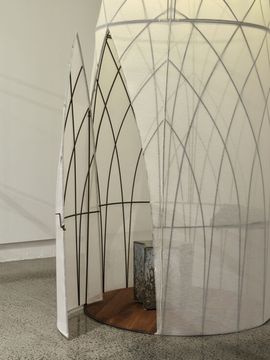 This structure stands alone as a walk-in vanity jewellery room chapel of absurdity and opulence. The room dedicated to jewellery highlights the importance we place on our beautifying paraphernalia. While practical in program it wants a space where in can sit off the wall and requires a ceiling so tall it’s a little ridiculous. It says I hold the most value in the room, it is exuberant and over the top like a Victorian vanity and is transcendent like a gothic chapel. Its kind of a romanticism of our objects.