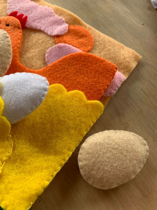 Detail of the chicken/egg felt page. Image: Zoe Ikin