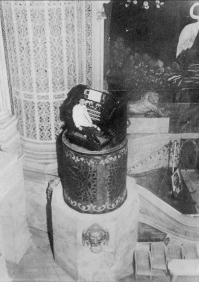 The Wurlitzer Organ in the Civic, with the flamingo curtain visible in the background. Photo: public domain.