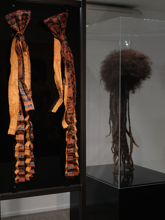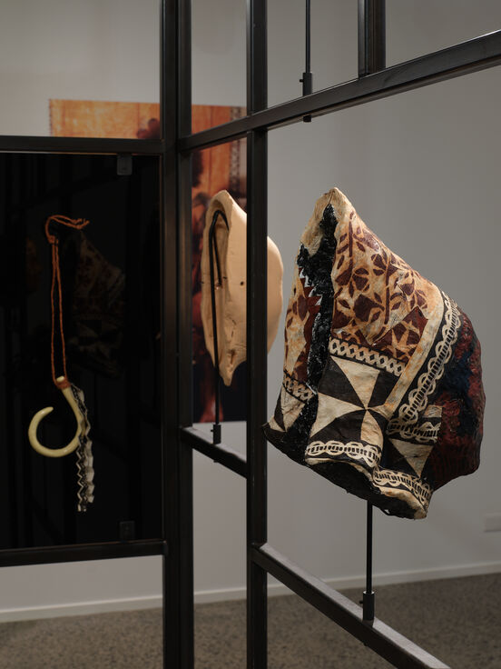Installation view of The Ulumate Project by Na Tolu: Joana Monolagi, Ole Maiava, Daren Kamali, 3 Dec 2022–26 Feb 2023 at Objectspace. Photograph by Samuel Hartnett.