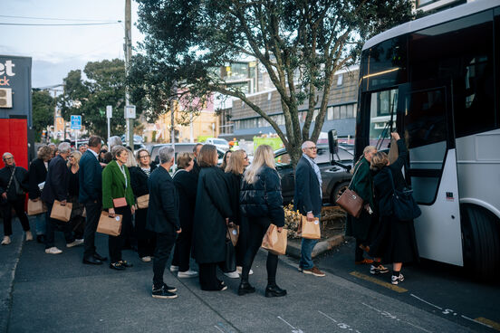 In celebration of our current exhibition, KOHA: The speculative world of Rewi Thompson join us for a coffee and doughnut at Objectspace before jumping on the bus to visit three locations across Tāmaki Makaurau, designed by architect Rewi Thompson.