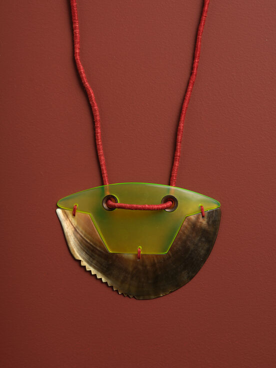 Warwick Freeman's Breastplate (1985) in the collection of Auckland Museum Tāmaki Paenga Hira, photograph by Sam Hartnett