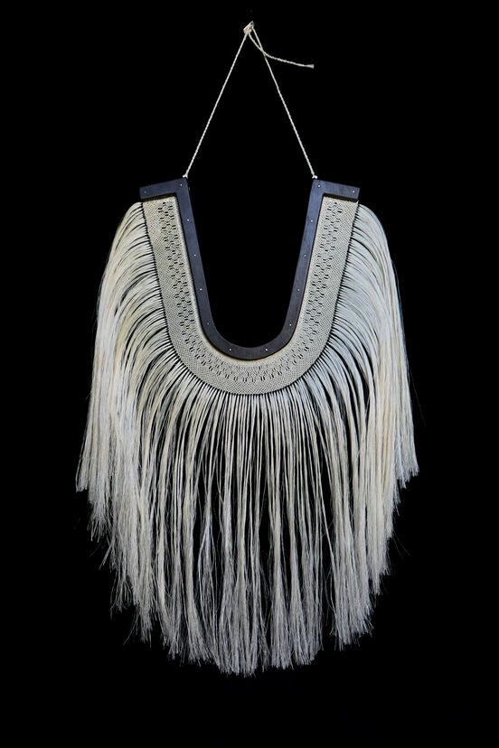 One of three adornments that make up A Triad for Safekeeping (2021) by Rowan Panther, Tāmaki Paenga Hira Auckland Museum: 2021.36.2. Image courtesy of the artist.