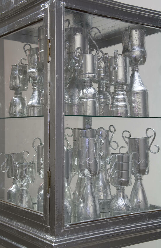 Detail Trophy, 2009 from the exhibition Studio of Exhaustion for Diligent Service, 3 July - 1 August, 2009, Two Rooms Gallery. Plastic, aluminium foil.