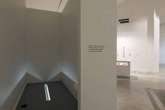 Renee Bevan, Burial Necklace, 2018, Natural clay, fibre. Installation view. Image courtesy of the artist and The Dowse Art Museum. Photo John Lake.