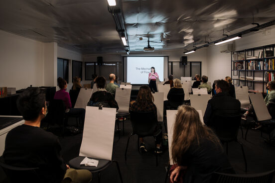 Hannah Beehre taking a Flow workshop at Objectspace. Photograph by David St George.