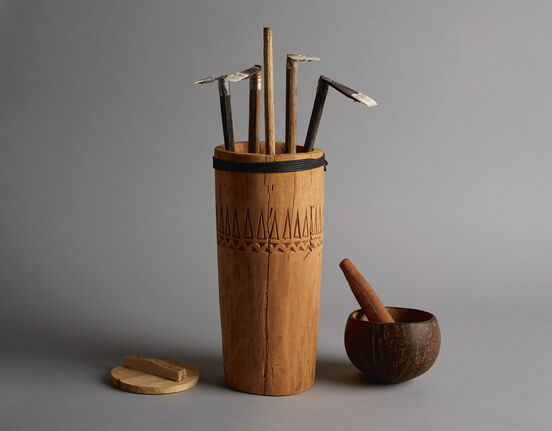 Tunuma (container for tattooing implements), August 1996, Samoa, by Su'a Sulu'ape Alaiva'a Petelo. Te Papa (FE010596)