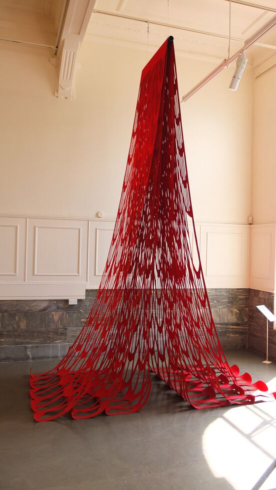 By cutting away into each individual sheet of paper, what emerges is a complex play of shadow and light – negative and positive space. As the layers multiply, parts move together and combine in depth, complexity and fragility, the resultant work resembles the paper-thin organic quality of skin – referencing the human body.