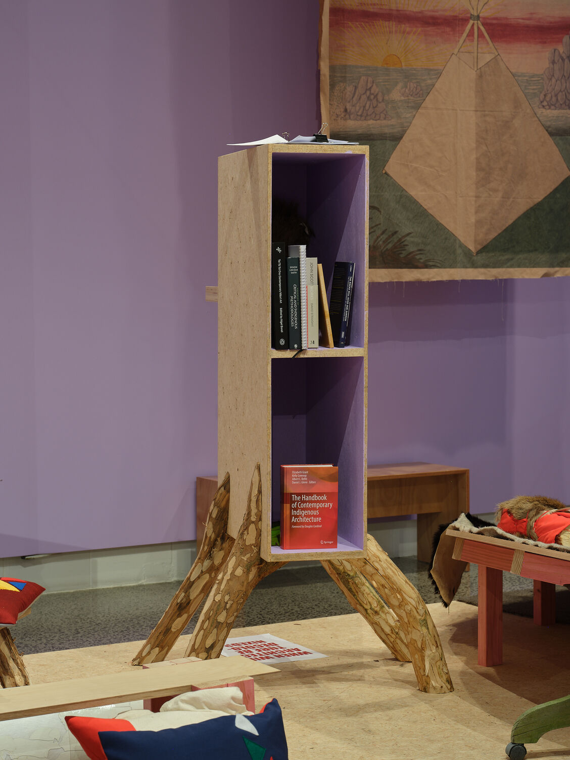 Named for the Northern Sámi terms ‘gumpi’ (a mobile cabin on runners) and ‘girji’ (book), Girjegumpi is a space for education and dialogue, addressing issues relevant to Indigenous architecture and resistance and Indigenisation. Girjegumpi is a gathering space, a reading room for study and a dreaming place for Indigenous imagination.