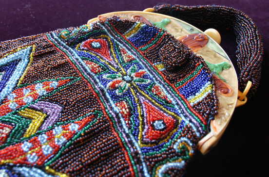 Many of these bags were acquired in New Zealand but once his enthusiasm had reached certain levels he tried to purchase bags as souvenirs of trips to particular cities, in New Zealand and elsewhere. Trips to the United Kingdom and the United States over the years provided opportunities to add key works to the collection as opposed to acquiring works as souvenirs. At its height the collection was around 300 works and recently it has been reduced to about 160 works. This selection concentrates on two groups, Victorian and Art Deco bags. The latter group are characterised by the strong colours introduced into European fashion by the Ballet Russe in the 1910s -which were widely used in the 1920s - and the use of the new material, Bakelite, which enabled the production of extravagantly decorative frames and handles.
