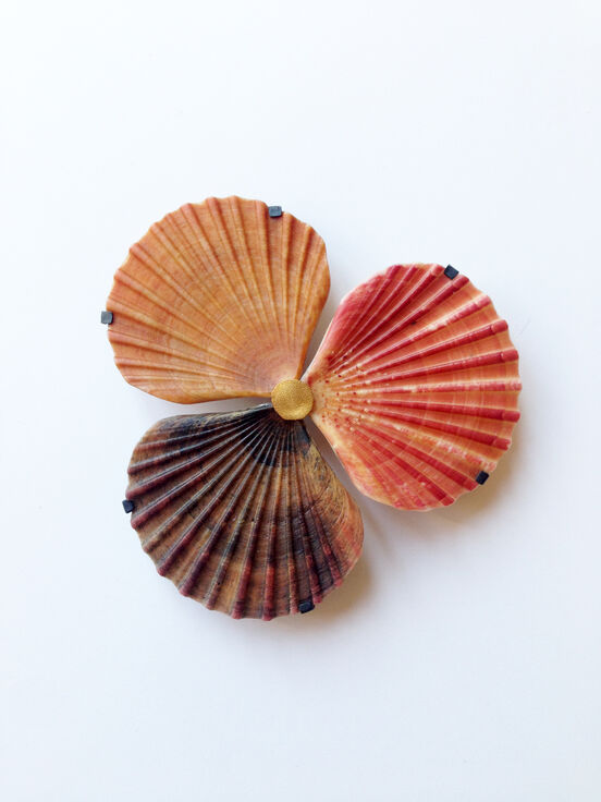 Warwick Freeman, Scallop Blossom, 1994. Scallop shell, gold, oxidised silver.