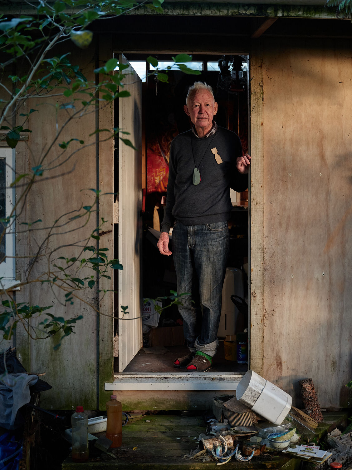 The installation replicates a wall in Preston’s home that is a catch-all for his collection. A humble building perched in the bush overlooking Muriwai beach, it was designed by David Mitchell in 1985 along with an adjacent workshop. The house’s architecture reflects Alan’s admiration for aesthetics found across Te Moana-nui-a-Kiwa with exposed beams and posts along its centreline.