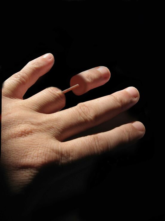 Lignel observes that these works shift our attention away from the object as commodity, onto the performative act of making...one set of fingers at a time, a negative portrait of the maker's hand. The result is a conflicted statement of authorship. At once ironic (any child could have done this) and nostalgic (this is, after all, the ultimate hand-made piece, all fingerprints and signatures), it means to plot, on either side of the same coin, the particular position of craft in the fine arts: singular and generic, authorial and derivative, spectacular and predictable.