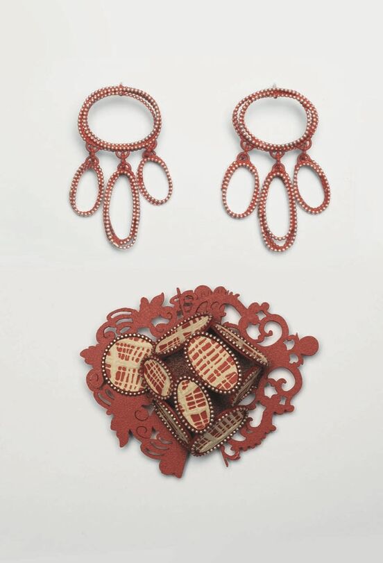 The jewellery featured in Metadecorative comprises brooches, rings, earrings and necklaces and has been made in the two and a half years following Curtis' Munich residency, which she says focused on "experimentation, and exploring new directions" within her already well established artistic practice. These works, Curtis says, are "a direct result of this time playing in Germany and my following travels around Europe."