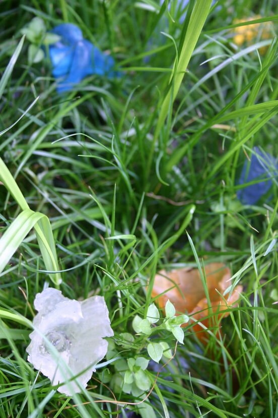 This installation by glass artist Julie Baverstock references the natural environment and manmade interventions. Her small flower bed, sown with the care and consideration of any dedicated gardener contains a collection of fragile glass flowers interspersed with living grass. Designed to reference the rolling green hills of spring, Baverstock invites us to question her intentions and forego the doldrums of the winter season.