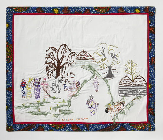 The ‘medium as message’ takes on new meaning through Shamamba’s unique storytelling process developed to overcome language barriers during her initial resettlement in New Zealand. Shamamba’s memories manifest into written story, then into drawings and finally into embroidered textiles set within the Congo landscape. She has relied on all three creative mediums as a means of embodying messages, histories and identities of DRC.