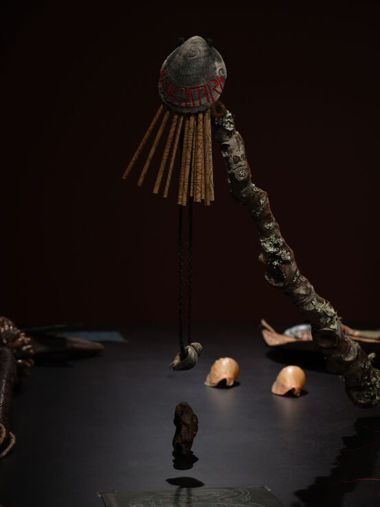 The practice of Neke Moa (Whare ā Papaīra, Ngāti Kahungunu ki Ahuriri, Kāi Tahu, Ngāti Porou, Ngāti Tūwharetoa) seeks to promote hauora by deepening connections between tāngata, tohunga and atua. Her work centres on adornment and object-making, drawing heavily on materials found in the taiao and on customary and contemporary processes. She has exhibited throughout the Moana Oceania region and internationally, participating in such projects as HANDSHAKE (2010–22), Wunderrūma (2014–16) and the 2016 and 2024 Festivals of Pacific Arts and Culture. In 2023, she was awarded a prestigious Herbert Hofmann Prize at Munich Jewellery Week. Works by Moa are held in the collections of important institutions, including Auckland Art Gallery Toi o Tāmaki, the Dowse Art Museum, and the Museum of New Zealand Te Papa Tongarewa. She is based in Ōtaki Beach, where many of her rauemi are gathered.