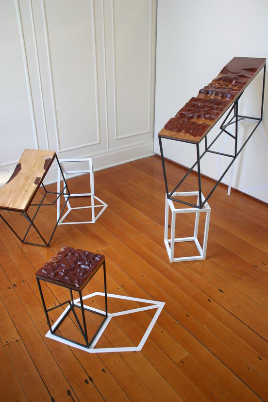Employing an innovative creative approach that differs radically from the mundane tasks these machines are typically used for, Piix unlocks the latent potential for crafting bespoke objects with CNC technology (computer numerically controlled cutting). Gamble explains that "the aim of CNC cutting is to produce an exact physical reproduction of computer simulated objects... This project [Piix] is driven by two technologies; the 3D top down scanner and a CNC mill. The textured timber surfaces have been achieved by scanning a range of woven fabrics associated with upholstery (Wool, Linen, and Cotton)."