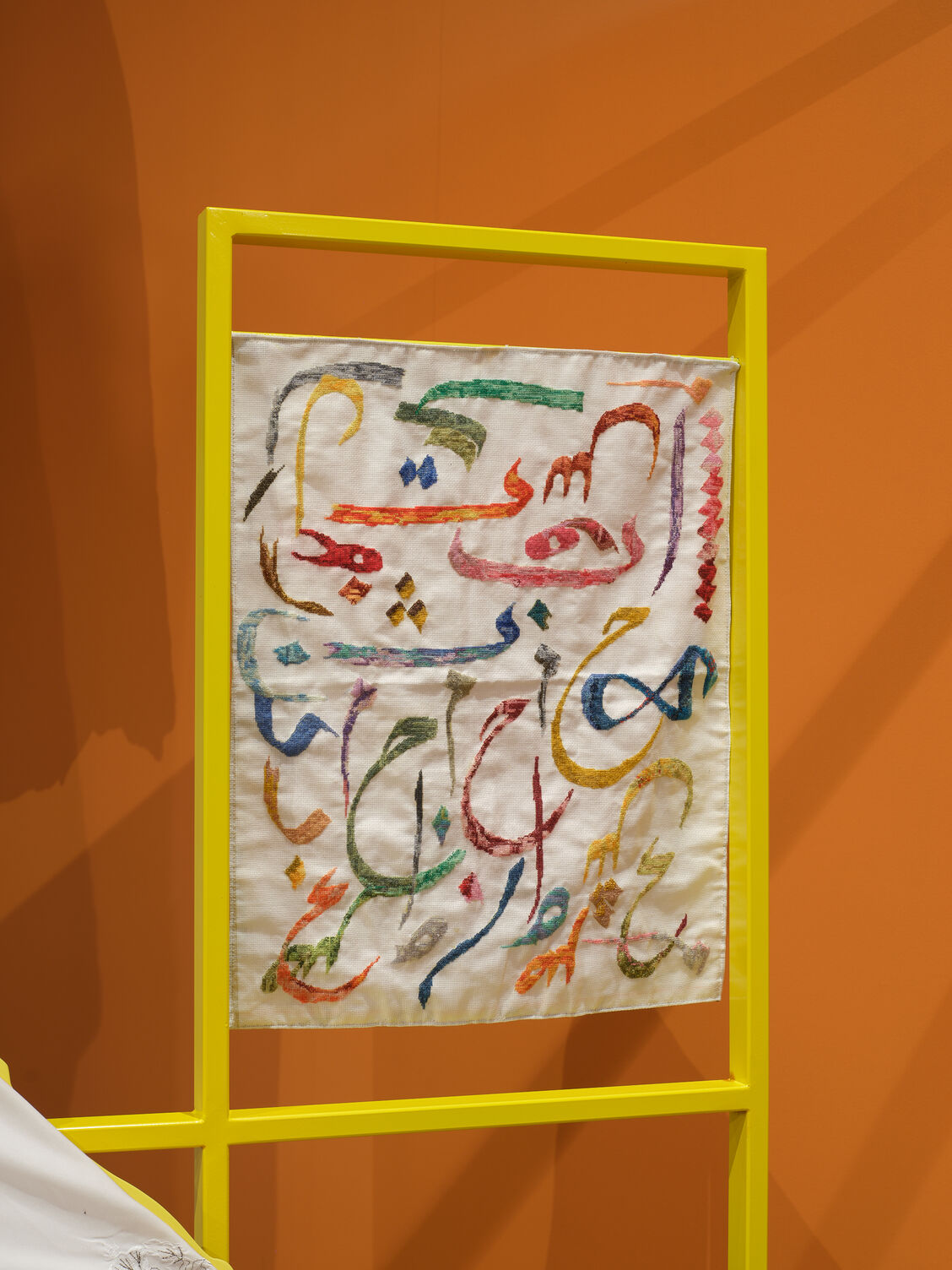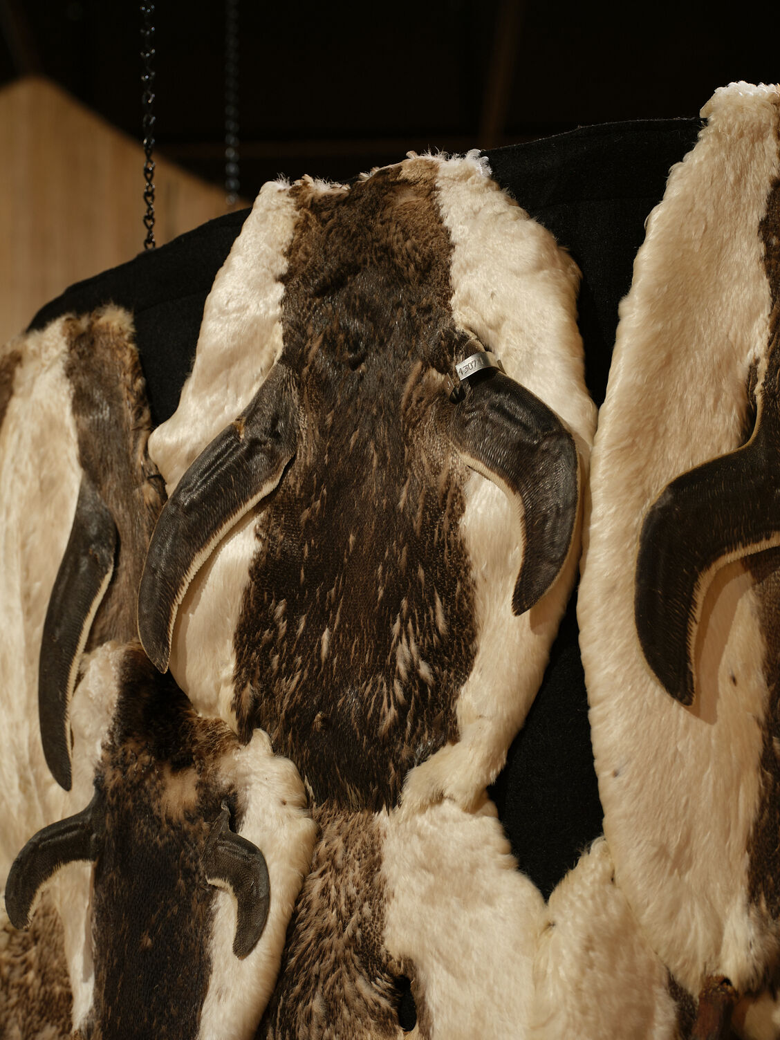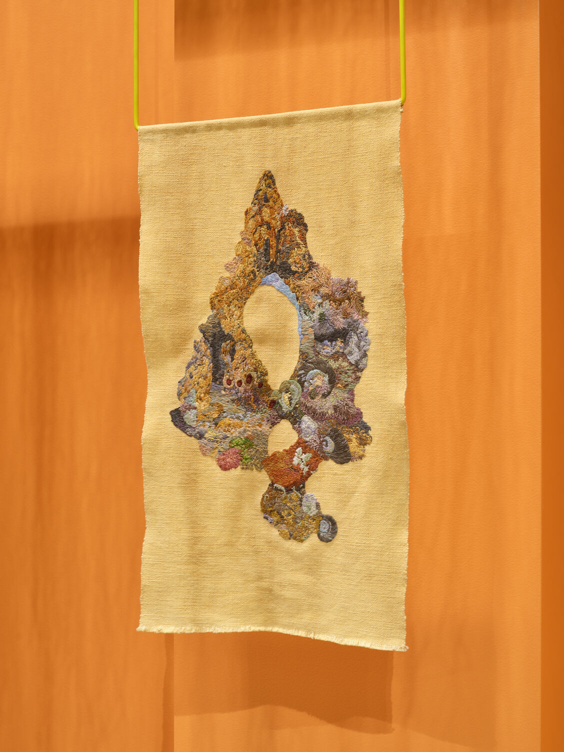 The exhibition space, designed with Micheal McCabe, reflects aspects of the wharenui, with artworks acting as pare, pou tokomanawa, and surrounding tukutuku panels (entryway lintel, centre pole and wall panels). The circular display is representative of the enfolding form of a kākahu or cloak. The intention is that this whare, this kākahu, provides a space for the artists to share while held in collective safety and aroha. The space invites others into the narratives too, both to experience a sense of collective responsibility, and to celebrate a diversity of contemporary textile practice