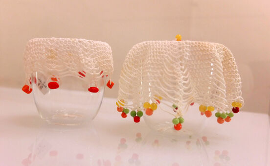 At the same time as I was rescuing the rather plainer version of Mrs Laubscher's handiwork from my mother's kitchen drawer, I noticed that a cousin was using some more contemporary versions – plain white netting with colourful African beads at the edges. She told me she had bought them at a local market from women's groups selling home wares. I wasn't able to get to that market, but I managed to buy some at a souvenir shop before I left Cape Town.
