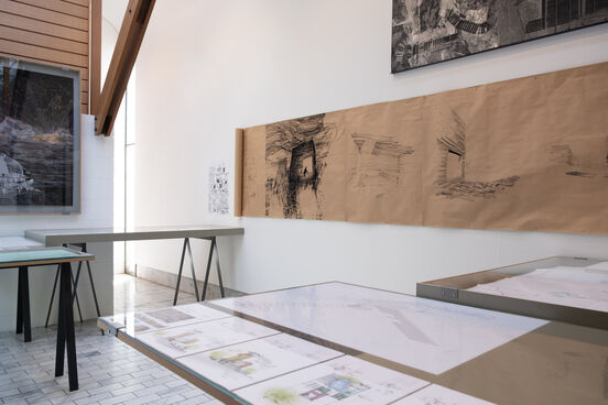 The exhibition brings together drawings by architects from across Aotearoa, spanning recent graduates and practising architects across multiple generations; here, technical drawings, sketches and works of art all jockey for position. A breadth of mark-making is expressed, from creative exploration to the formative stages of the design and construction process, mapping the enduring modes of drawing that architects return to.