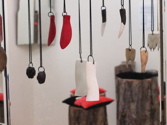 Rococo Revolution is my reaction to this experience. It illustrates my discomfort with the way we 'hoover up' wildlife and environment for our own frivolous ends. With these pendants I want to honour the simple, elegant forms of the animal world. The subject of the brooches is the battle between nature and culture. The collection of works pays homage to the crazy and rich craft traditions of the Rococo Age.