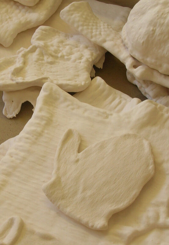 Palleson notes "In this new series of work I have sought to recognise my role as a maker and address the craft heritage of my materials ... I view this series as collaborations between myself and these anonymous makers/knitters, to preserve the object but also the sentiment or act of love, boredom, duty or concern that created them."