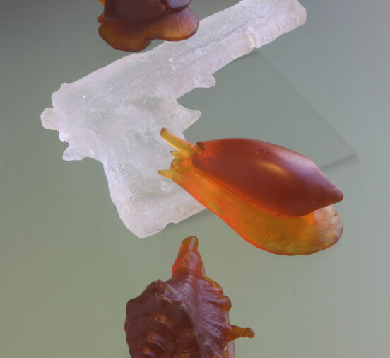 By placing seemingly disparate objects together artist Lee Brogan wants us to consider the impact of governmental and corporate relationships on the natural environment. The gun and grenade, based on actual artifacts of war from the Solomon Islands are slowly overwhelmed by the progress of the snails, demonstrating the persistence of nature in times of human adversity and strife.