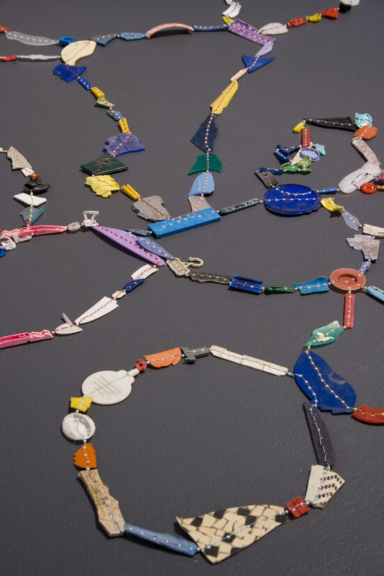 Roseanne Bartley's installation Seeding the Cloud arises from her ongoing jewellery project Seeding the Cloud: A Walking Work in Progress that reconfigures the purpose jewellery plays in our lives. New Zealand born and now Melbourne based artist Bartley poses an alternate vision for engaging with and thinking through sustainability and craft, through the language of jewellery.