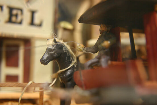 Miniatures are masters of suspense. They conceal their impact until the last moment. It's not until you draw near and bend to their level, that an unexpected abundance of detail erupts. Miniatures brim over with imagined life. In this sense, they are like Doctor Who's Tardis or Mary Poppins' handbag: they contain more than their size allows.
