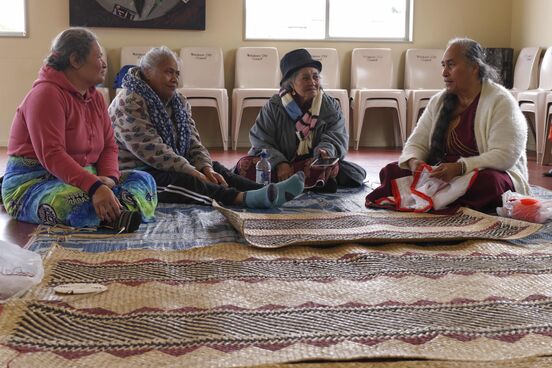 As the palm-like pandanus tree does not grow in Aotearoa, pufasa (reams) of leaves have been harvested by family members on Niutao, Tuvalu, and shipped to New Zealand to resource this project. For some members, this has been a return to pandanus weaving after a break of decades, with many of the group migrating from Niutao in the late 90’s and early 2000’s. Members of Fafine Niutao I Aotearoa divided themselves into suburbs to produce these mats, with one group working in Massey, and another in Ranui (these Western suburbs are home to a large portion of Auckland’s Tuvaluan community, with many families based in this area).