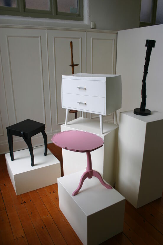 Katy Wallace observes that "New Zealand is saturated with discarded furniture located in demo yards, house-lot auctions, traders, and on the side of the road. I have always considered this low status material as a significant waste, and as a 'fuel' in waiting to be worked into a new entity."