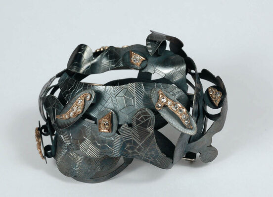 The exhibition numbers close to 50 exquisite pieces including a body of works made specifically for this exhibition and also featuring a number of retrospective pieces which help to provide a context for Britton's innovative practice. Each of Britton's pieces is meticulously constructed and refined and includes alternative materials as diverse as plastic, glass, shells, brass and paint alongside traditional materials like silver, gold, diamonds and sapphires.