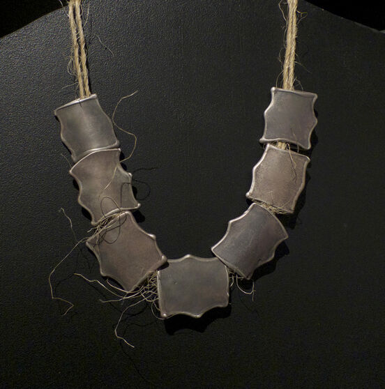 Areta says her practice has developed into explorations of craft methodology forming out of collective Ngāi Tahu cultural values. Much of her current work involves collaborative processes from responding to narratives told and written, to working alongside and with other creative professionals. The result is an expanded practice full of surprises and development. The artwork sits between traditional Māori adornment produced in the present, and the histories and practices of New Zealand contemporary jewellery. Whakapaipai brings together contemporary jewellery, photograms and cyanotype blueprints.