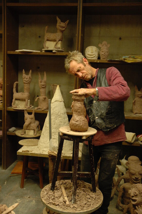 Dunedin artist Jim Cooper’s critically acclaimed career of more than two decades is based on an idiosyncratic approach to the making of sculpture in clay. In 1989 he completed his undergraduate studies in ceramics at the Otago Polytechnic School of Art, returning in 2000 to complete a Master of Fine Arts. After a period of teaching at the Otago Polytechnic, he commenced his career as a full time professional artist.