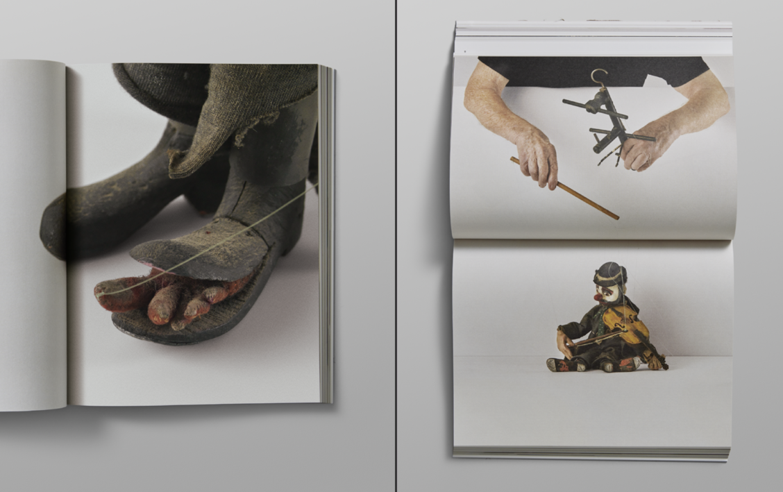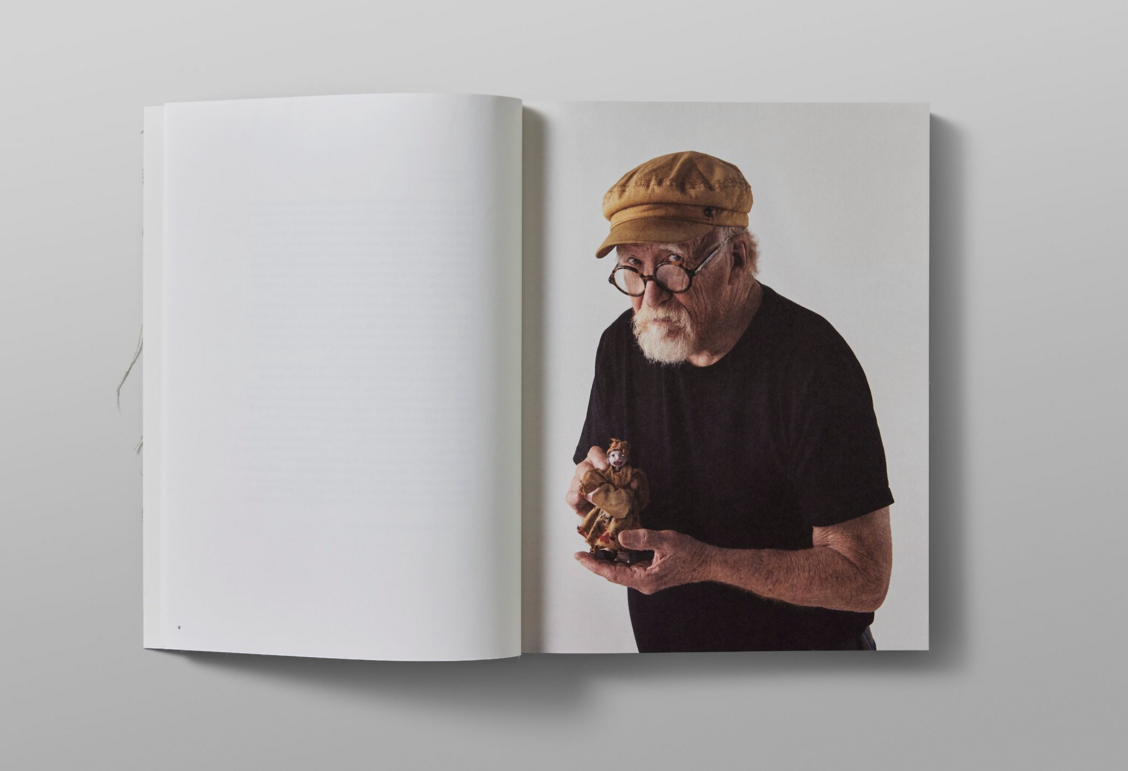 At the centre of the book is a wide-ranging, intimate interview between Greer and his former student, Dean Poole. The tone of the conversation is that of old friends, and the subject matter traverses the artist’s memories, how the puppets came to be, their influence on his practice, and a life lived around art. Extensive sidenotes delve deeper, giving the reader insights into Greer’s thought processes and providing references to some of the significant sculptural pieces that have defined his exceptional career.