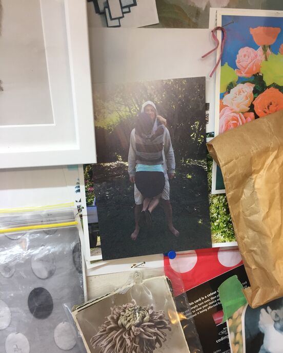 Detail studio wall and postcard ‘Renee Bevan necklace’