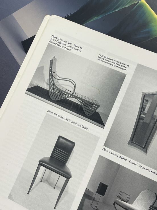 Chaise Longue designed by Diana Firth and made by Brian Heighton (top left) in New Zealand Crafts, Craft Council Magazine 26 Summer 1988