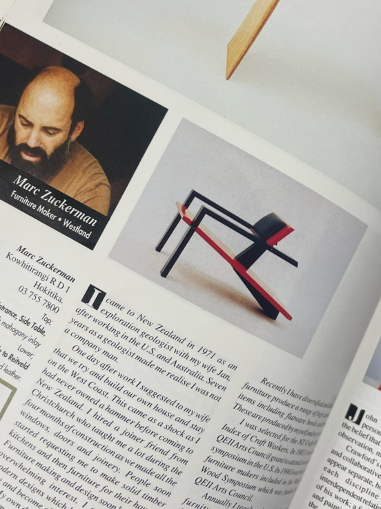 Marc Zuckerman's 'Praying Mantis Chair - Ode to Reitveld' in The First CRAFT New Zealand Yearbook