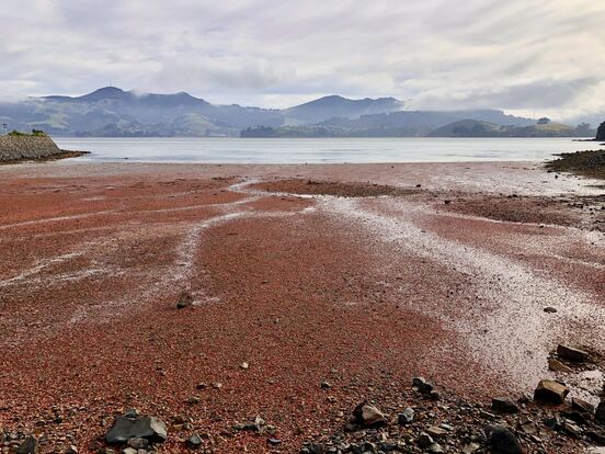 Fig. 3: Krill washed up at Edwards Bay in Dunedin, May 2020. Image by Tim Slade.