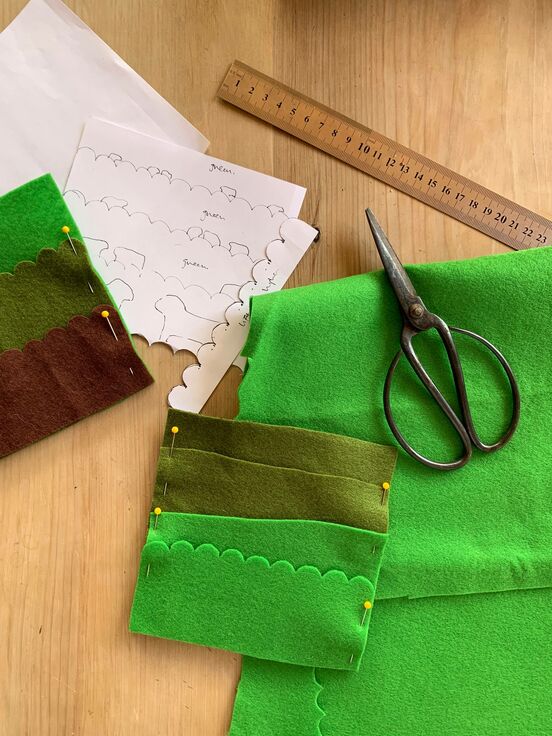 3. Use those pieces of paper as stencils to cut out the felt elements.
