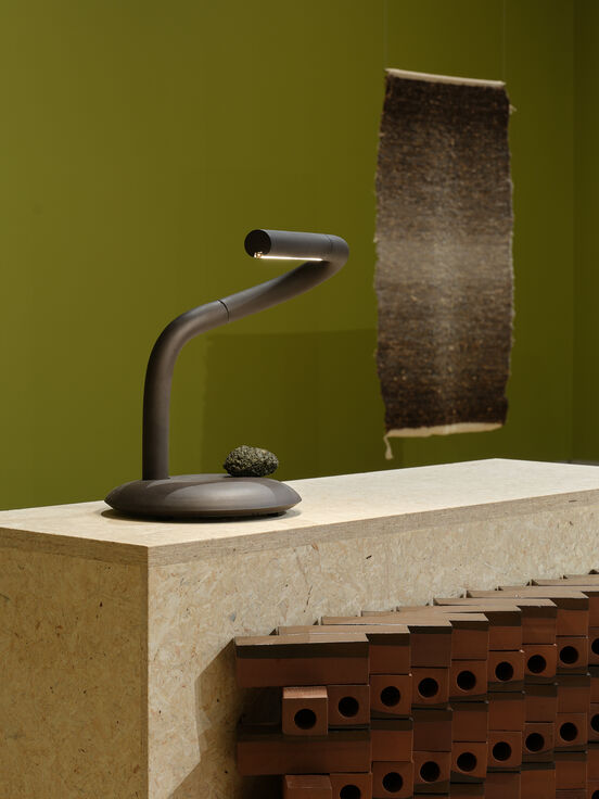 BP: The lamps simply started with a desire to make a ceramic anglepoise lamp – pure problem-solving. I had been wanting to move away from domestic ware and was thinking about alternative ceramic outcomes other than vessels. This happened to coincide with me making my extruder, which opened up more possibilities and shifted the forms I was trying to make. The brick/hearth work is more specifically related to how we create our environment; the physical materials and methods of construction that we use. The bricks were originally made to operate as a plinth to show my lamp works but their modular nature has meant I can reshape and reuse them in multiple iterations. This specific form comes from thinking and testing I've been doing around creating an actual hearth in our home that would sit in front of an old brick fireplace.