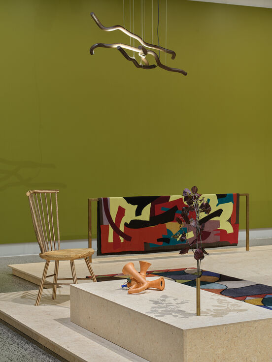 Ben Pyne, Fossick Lamp 1, 2024, Brick Lamp 2022, Fired Place (new brick configuration) 2024 and Extrusive Lamp, 2022 within How to make a home, 14 Sep–17 Nov 2024 at Objectspace, photographs by Sam Hartnett